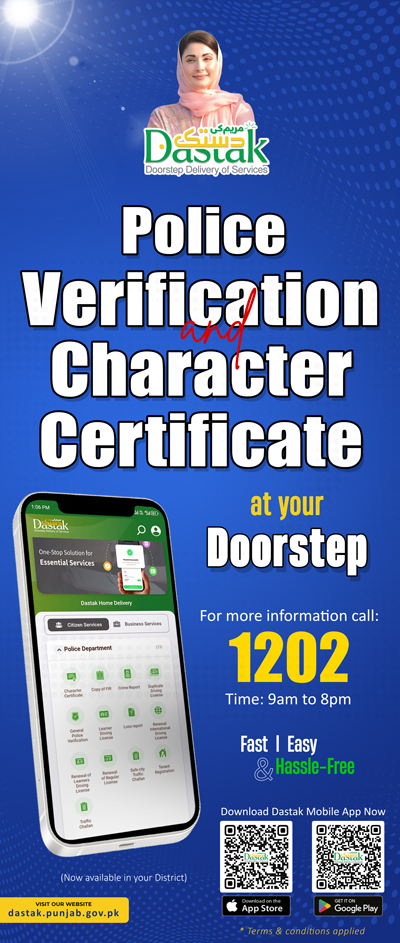 Domicile is required for this position. For Getting Domicile at home through flagship initiative of Government of Punjab, Call 1202 or download the Dastak Doorstep Delivery App now!