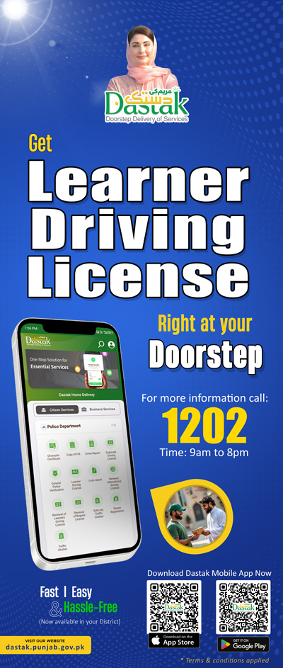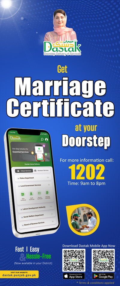 Domicile is required for this position. For Getting Domicile at home through flagship initiative of Government of Punjab, Call 1202 or download the Dastak Doorstep Delivery App now!